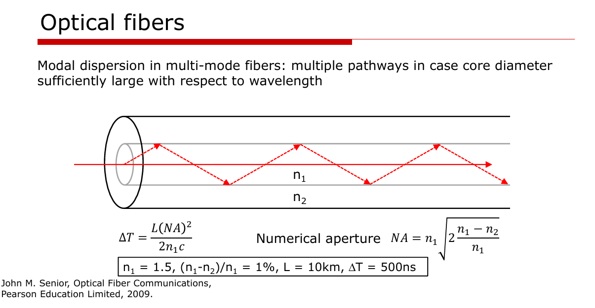 Modal dispersion - distortion due to different propagation delays of different optical modes. Modal dispersion matters in multimode fiber.