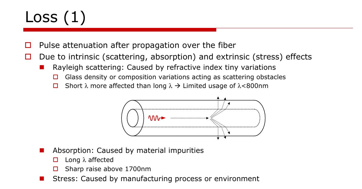 Loss. Losses cause pulse attenuation after propagation from a fiber. These are caused by intrinsic sources, including
