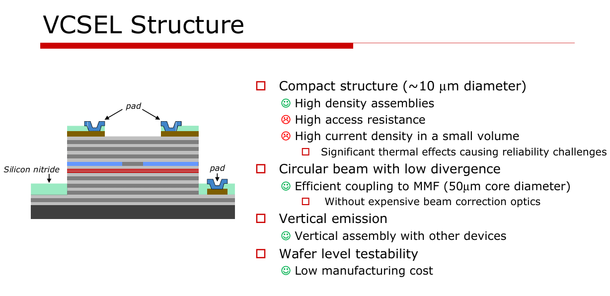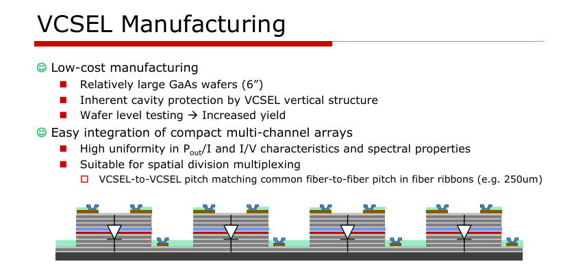 VCSELs are very popular in short reach communications for a numbers of reasons: