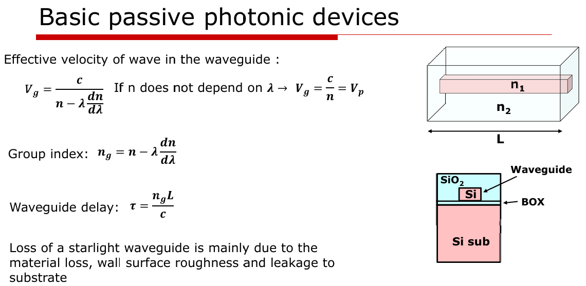 This light is then passed through silicon waveguides that is then operating in a few different “modes”. The waveguide itself has a index of refraction n1 and the oxide has another index of refraction n2. For confinement to occur, n1>n2. In silicon photonics, n1 ~ 3.48 and n2 ~ 1.5.