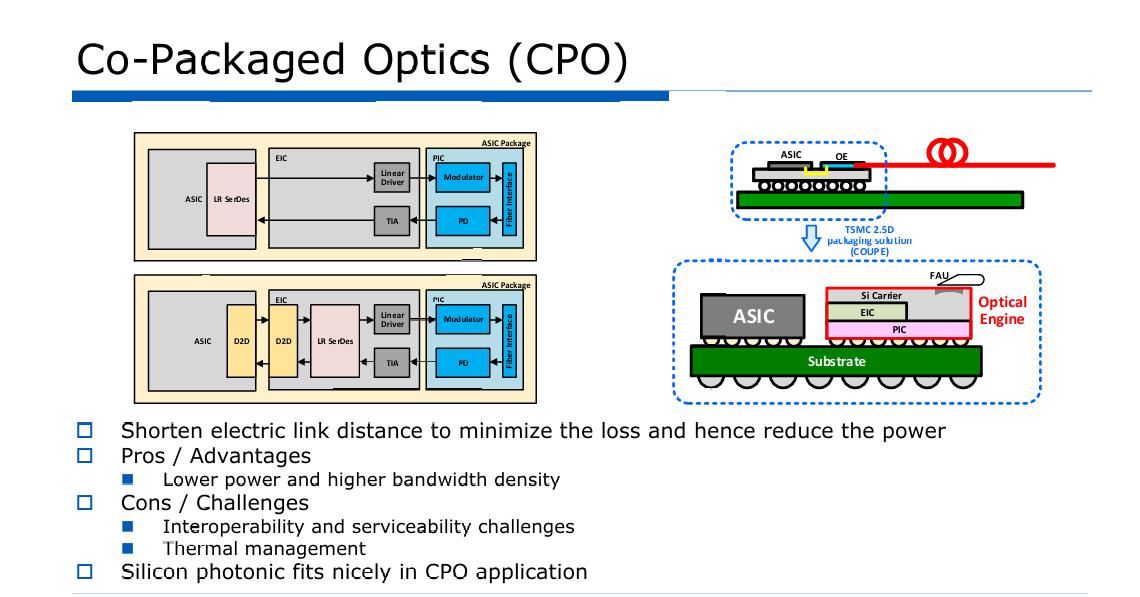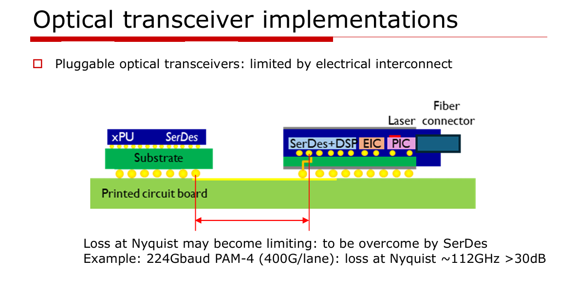 Co-packaged optics is one solution as part of a broader effort to tightly integrate the optical module and the host chip to reduce SI challenges at high speeds.