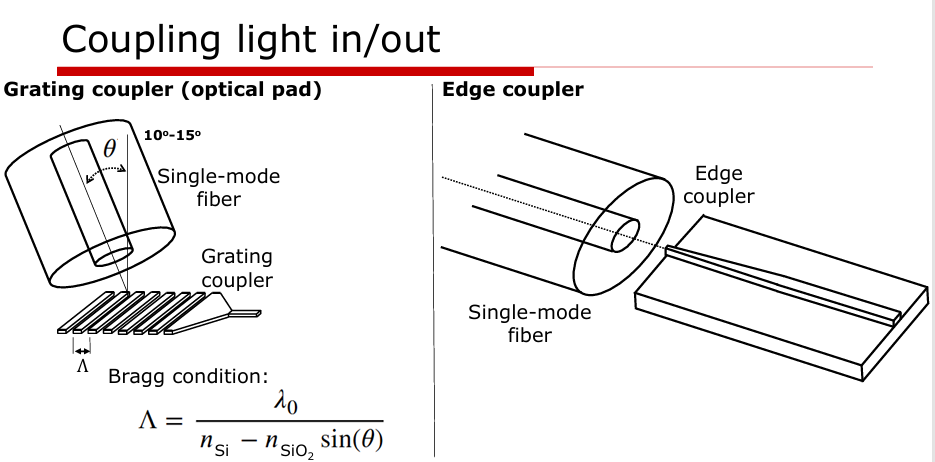 Grating Coupler - vertical coupler where light is shown into a Bragg reflector