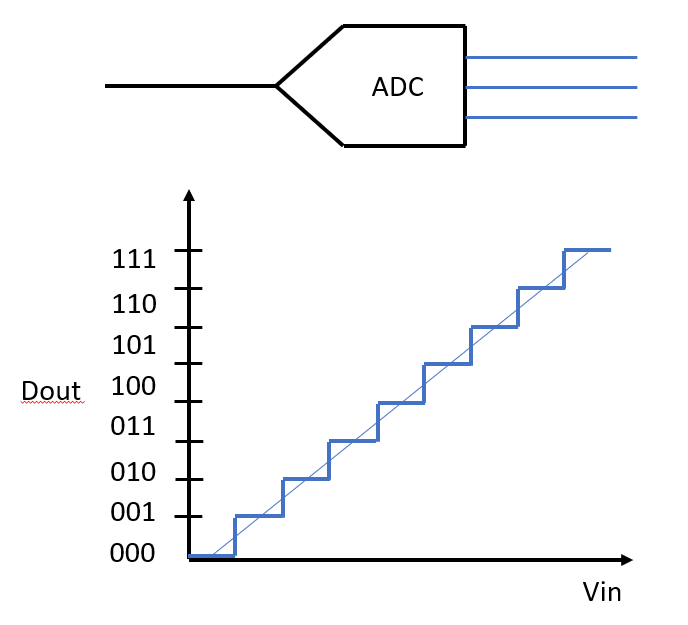SAR ADCs have the following output transfer function that resembles a “stairstep”: